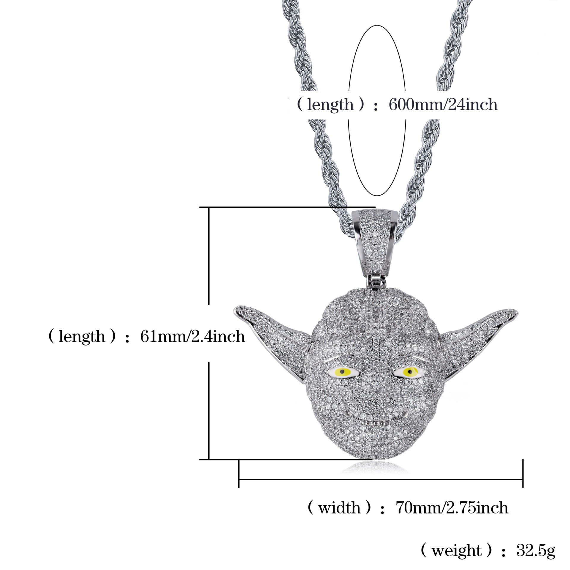 Hip Hop Yoda Master Pendant Necklace with Zirconia