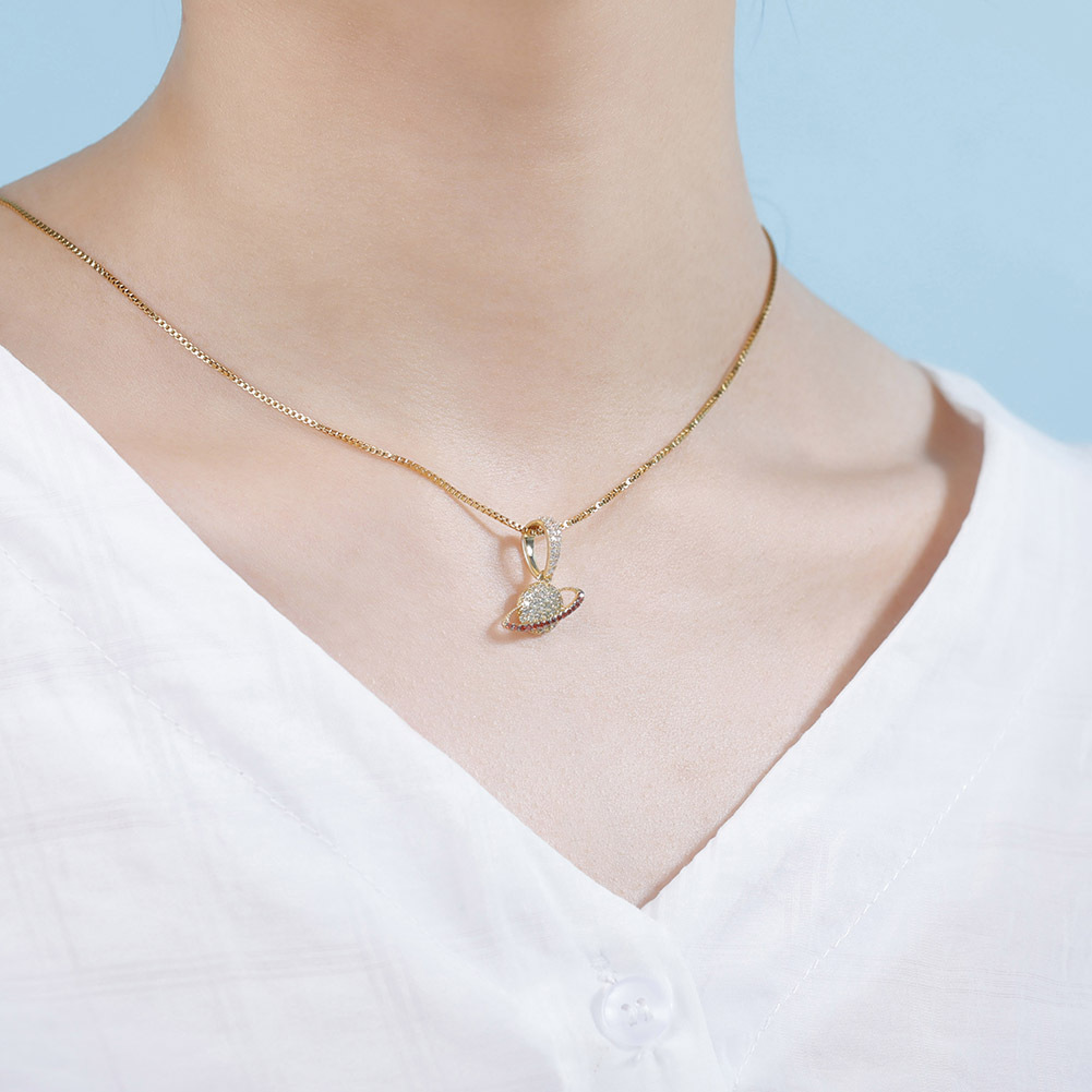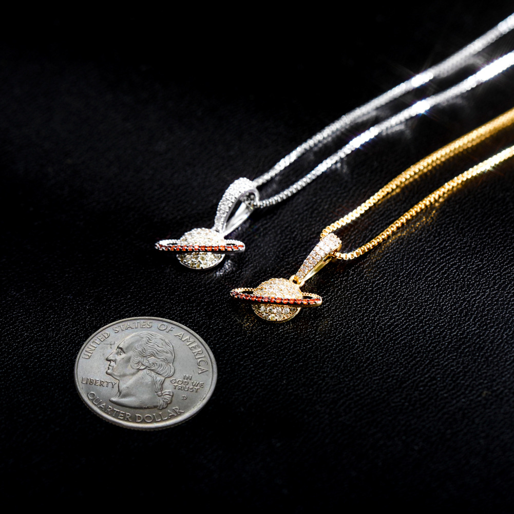 S925 Silver Hip Hop Planet Pendant Necklace with Zircon